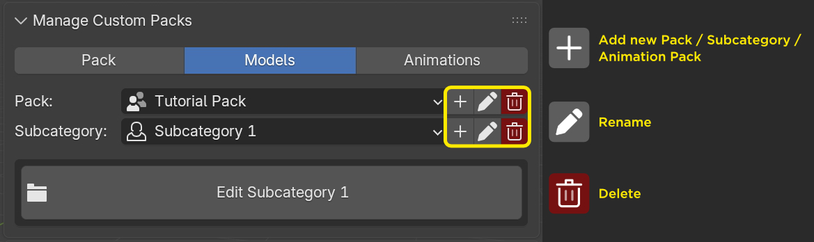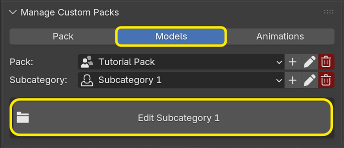 Go to the Models section and select your pack and a subcategory. Then click Edit.