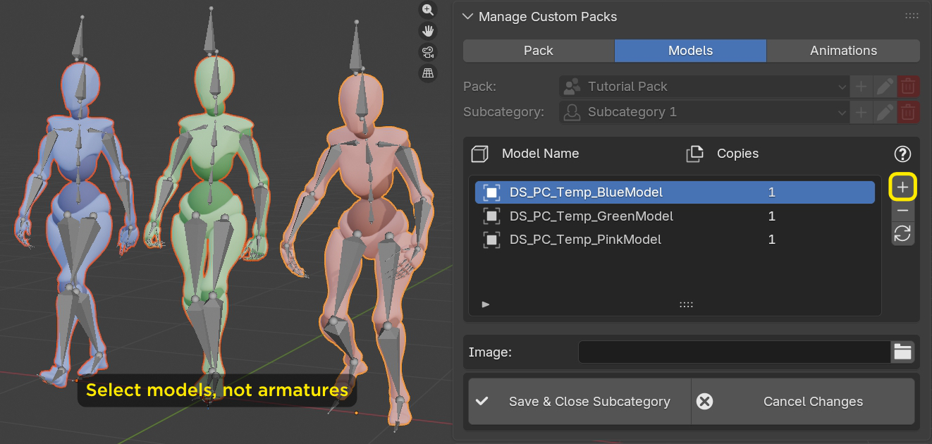Additionally, due to the way the add-on works internally, if your pack contains fewer models than the number of animations in your animation packs, not all animations will be used.