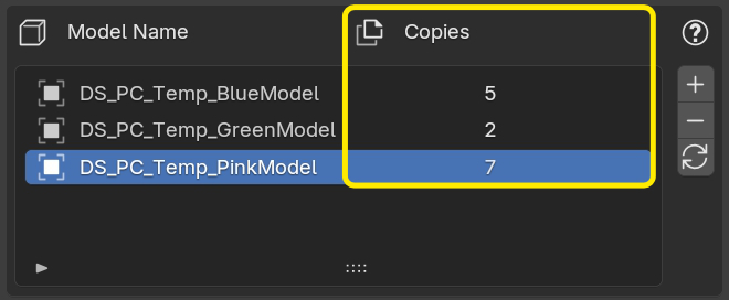 The Copies function allows you to store more than one instance of the same model in your pack. This is useful if you want a specific model to appear more frequently in the crowd.