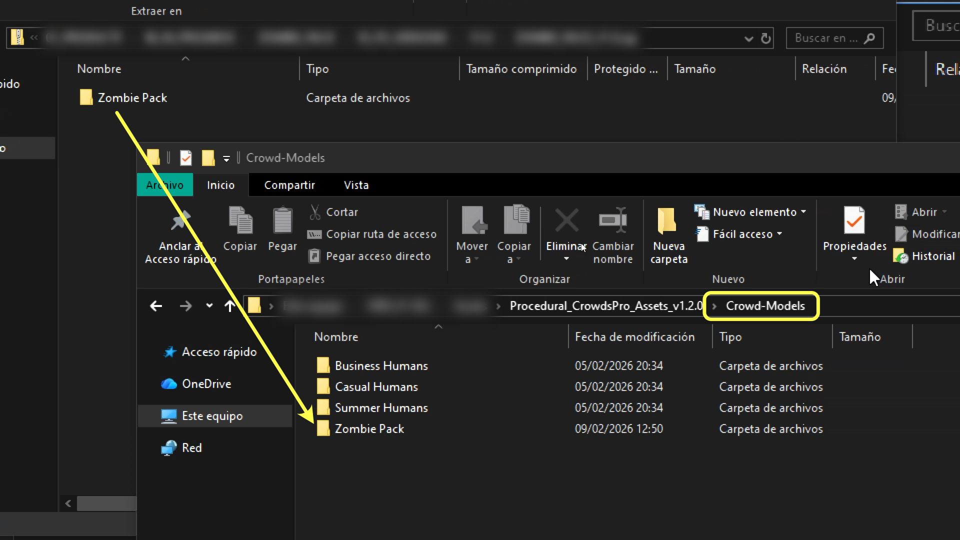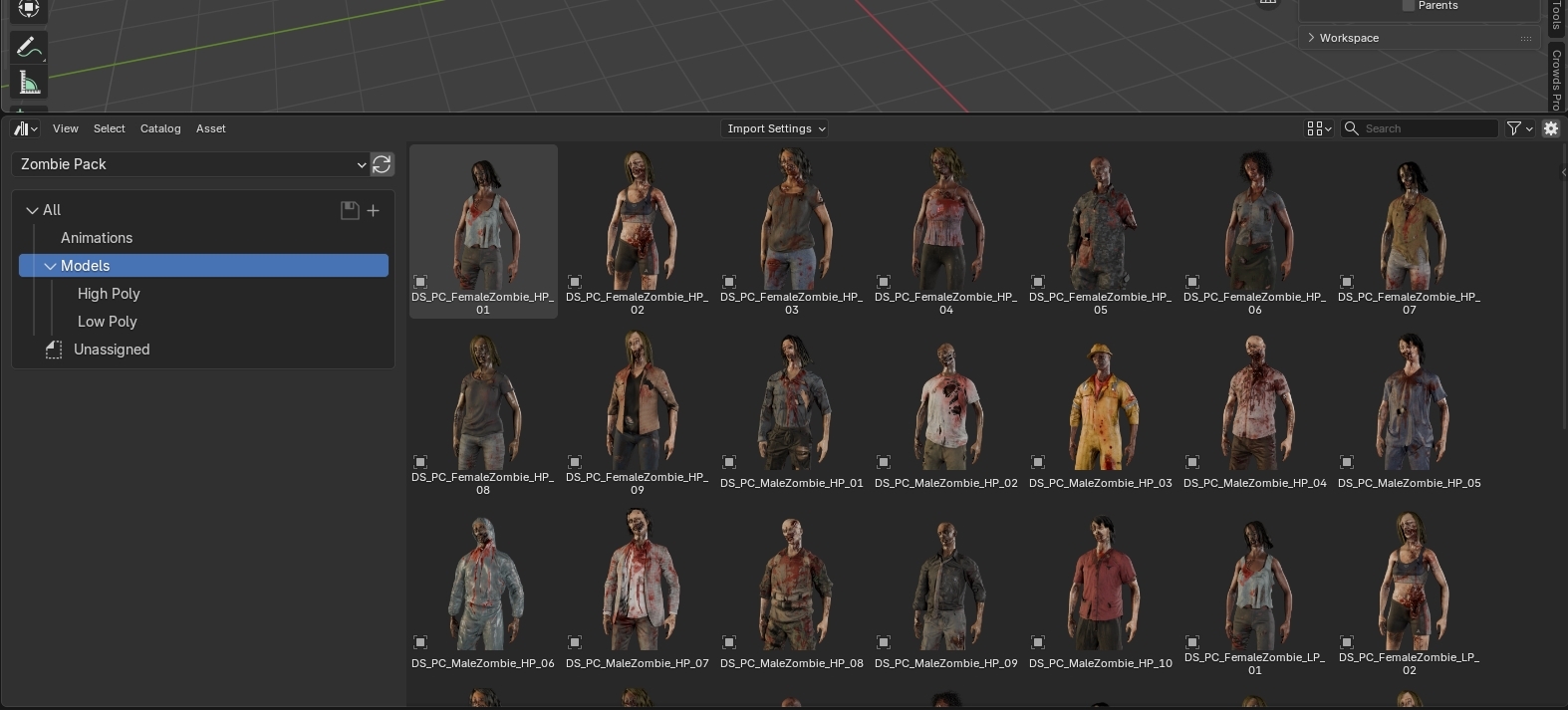 Copy the extracted folder "Zombie Pack" to the Crowd-Models folder within your Assets directory.